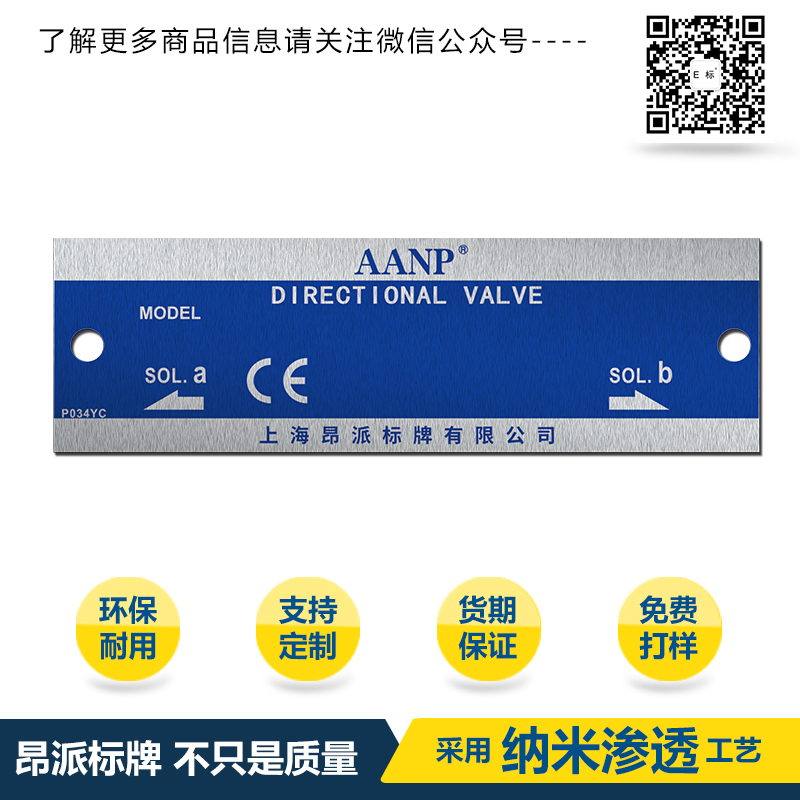 電磁方向閥銘牌標牌 時間:2022-03-04 14:42:01 分類:泵閥標牌 瀏覽:次 1.產(chǎn)品工藝:公司引進德國鋁板平網(wǎng)絲印機(“納米滲透印刷”分子與分子結(jié)合油墨滲透進鋁板內(nèi)層,與鋁融為一體,經(jīng)過處理長期使用不易褪色)該機器特點可在金屬鋁表面印刷多色圖文,所印圖文細膩生動,還原客戶對色彩的要求。2.產(chǎn)品尺寸標準,專業(yè)的技術(shù)人員,保證產(chǎn)品尺寸的標準化。 分享收藏: 上一個: 方向閥銘牌標牌 下一個: 電磁閥銘牌標牌 相關(guān)案例 電磁閥溢流閥銘牌標牌 閥門銘牌標牌 方向控制閥銘牌標牌 電磁閥銘牌標牌 方向閥銘牌標牌 電磁閥門銘牌標牌