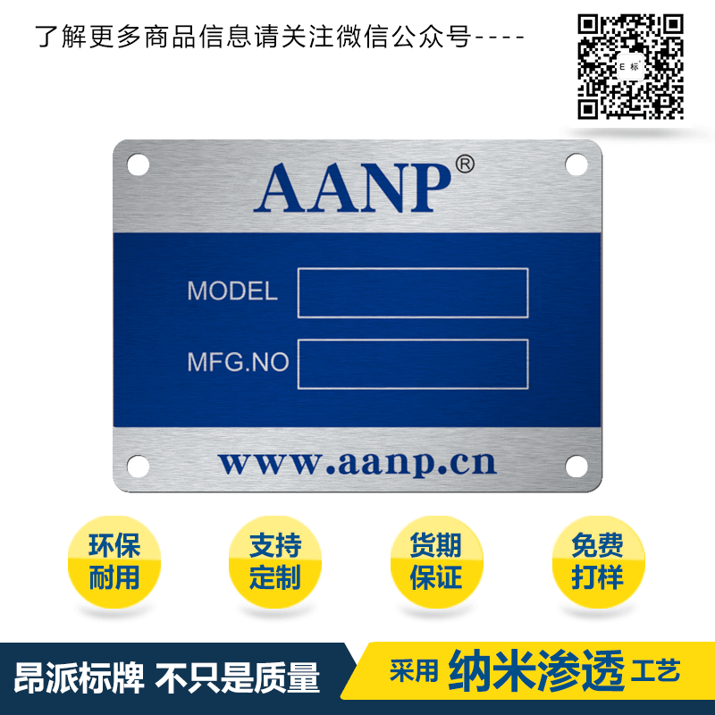 上海昂派標(biāo)牌利用最新專利產(chǎn)品:防偽鋁合金銘牌。設(shè)備銘牌在紫外燈照射瞬間顯防偽標(biāo)識,防偽標(biāo)識按照