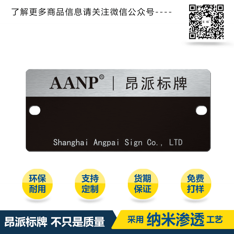 電磁閥萬用鋁合金防偽銘牌標牌 時間:2025-05-06 16:01:39 分類:防偽銘牌 瀏覽:次 上海昂派標牌有限公司是一家專業(yè)制作金屬陽極氧化銘牌的廠家,公司從產(chǎn)品的設計、生產(chǎn)及售前 咨詢售后均有專業(yè)人員負責。我們擁有一批高素質的專業(yè)生產(chǎn)隊伍,細致精密的操作流程及現(xiàn)代化的管理體系,對你的需求我們有絕對的信心做好。攜手共贏 奉獻社會,踏實創(chuàng)新 匠心制作。 分享收藏: 上一個: 電磁設備鋁合金防偽銘牌標牌 下一個: 泵閥防偽銘牌標牌 相關案例