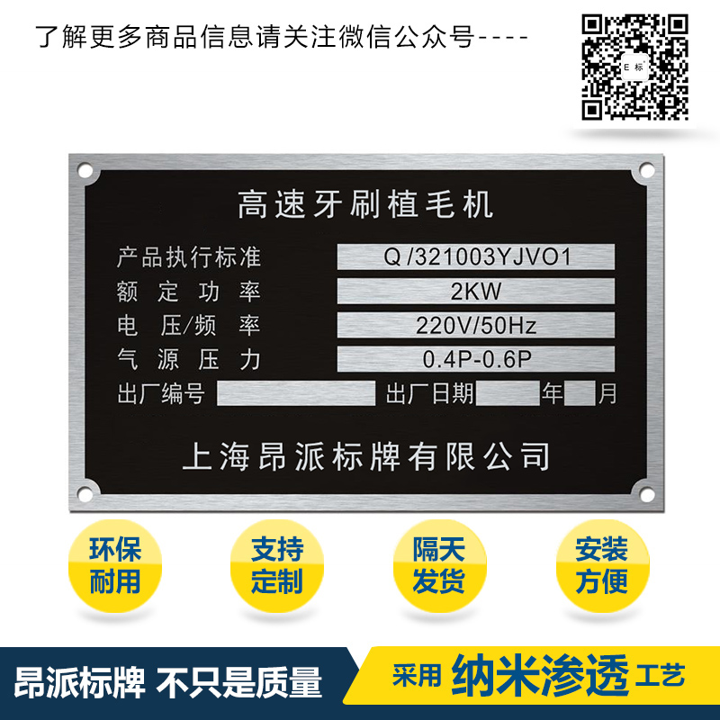 機(jī)器銘牌標(biāo)牌 時(shí)間:2018-05-18 19:05:56 分類(lèi):金屬銘牌 瀏覽:次 標(biāo)牌、銘牌、鋁牌的品質(zhì): 進(jìn)口材質(zhì)鋁標(biāo)牌可以耐高低溫、耐酸堿、使用壽命長(zhǎng)。金屬條碼耐腐蝕、耐汽油、耐溶劑型、耐高低溫、抗風(fēng)、雨、雪侵蝕和日曬,壽命長(zhǎng)。在戶(hù)外或室內(nèi)(廚房/化工廠等場(chǎng)合)惡劣環(huán)境下能使用,壽命長(zhǎng)等諸多優(yōu)勢(shì),贏得了來(lái)自世界各地客戶(hù)的認(rèn)可。 分享收藏: 上一個(gè): 固定資產(chǎn)銘牌標(biāo)牌 下一個(gè): 橢圓形標(biāo)牌銘牌 相關(guān)產(chǎn)品