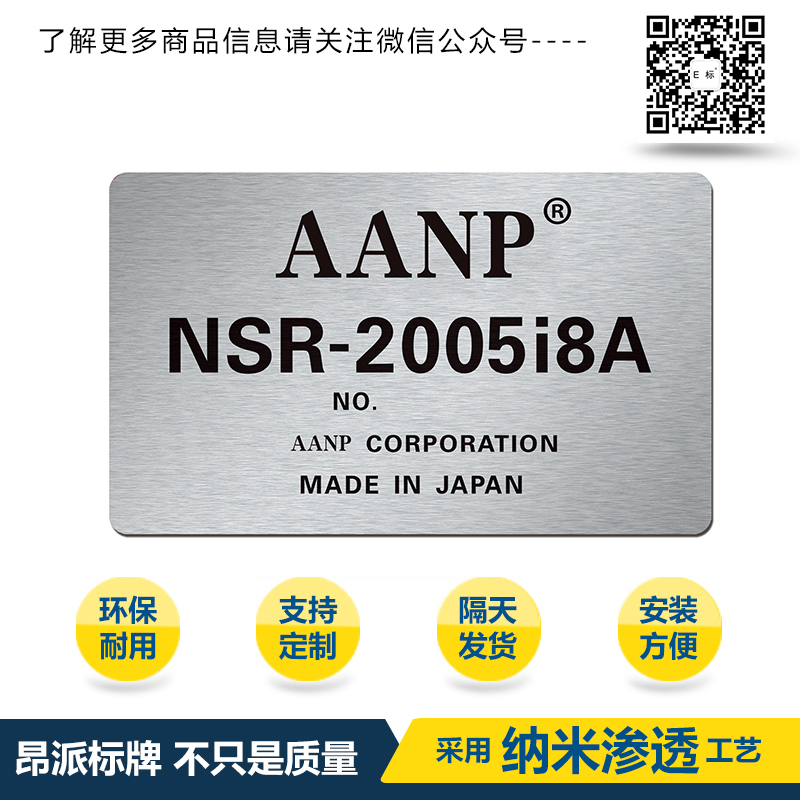 定制銘牌標牌 時間:2018-09-07 16:34:29 分類:金屬銘牌 瀏覽:次 標牌、銘牌、鋁牌的品質(zhì): 本產(chǎn)品具有耐酸堿、耐熱震、耐高溫、抗沖擊、還具有很強的耐曬、耐磨擦、耐高溫、耐腐蝕、耐有機溶劑等特性,抗紫外線、抗粉化、不受臭氧、空氣污染、在室外陽光照射不褪色,不含任何對人體有害的元素等特點,廣泛應(yīng)用于化工、電力和電信等腐蝕性強或須把標志牌懸掛于室外的企業(yè),歡迎新老客戶拿圖拿樣來定做.不分量大小都可以定做價格合理.質(zhì)量保證交貨準時。 分享收藏: 上一個: 常開銘牌標牌 下一個: 定制銘牌標牌 相關(guān)產(chǎn)品