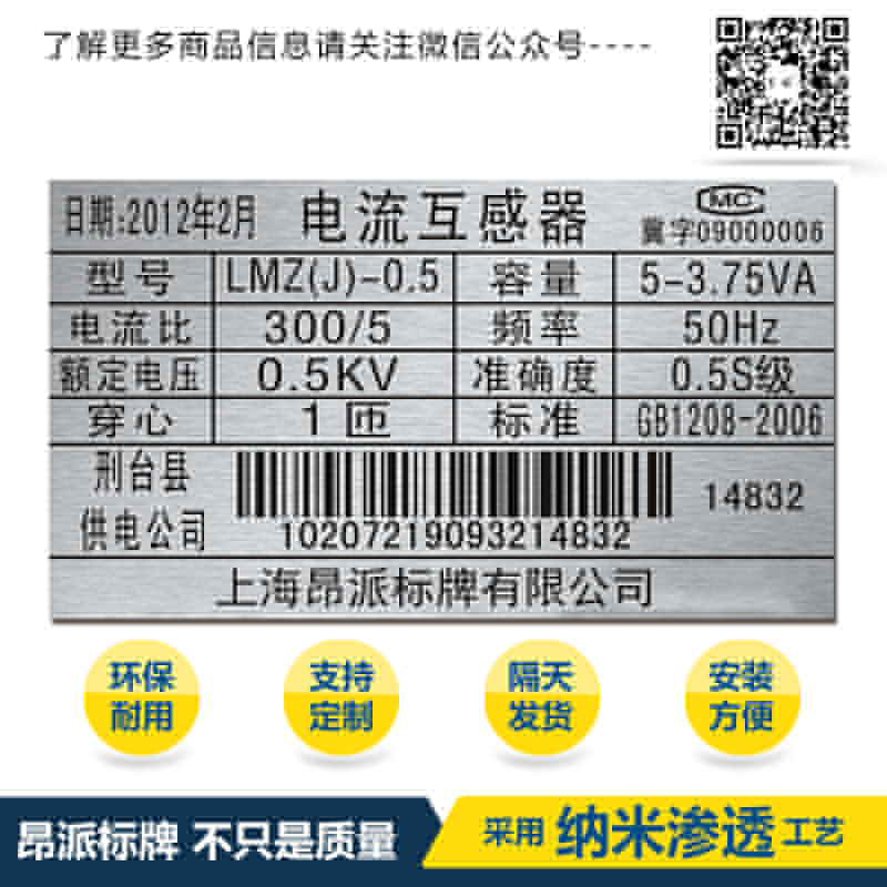 電網(wǎng)條碼銘牌標牌 時間:2018-05-21 16:06:08 分類:金屬條碼 瀏覽:次 關于金屬條碼獨特點-以及-質量優(yōu)勢: 金屬二維碼---進口鋁板---高科技德國印刷技術---耐摩擦,耐溶劑,耐高溫,抗摩擦,耐紫外線,耐化學品性,耐腐蝕性,滲透印刷技術做出來的金屬二維碼使用壽命久不易掉色,金屬二維碼識別率快,掃描識別率高。 分享收藏: 上一個: 郵局運輸條碼銘牌標牌 下一個: 金屬條形碼牌銘牌標牌 相關產(chǎn)品 感應器鋁合金條形碼銘牌標牌 工程系統(tǒng)管理使用金屬條形碼銘牌標 物流管理鋁制條形碼銘牌標牌 倉庫管理鋁制條形碼銘牌標牌 流水號鋁制條形碼銘牌標牌 序列號鋁制條形碼銘牌標牌