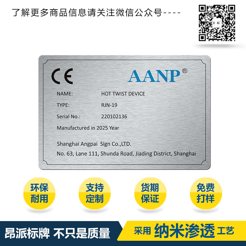 自動(dòng)化設(shè)備鋁銘牌標(biāo)牌 時(shí)間:2025-05-07 10:29:37 分類:陽(yáng)極氧化銘牌 瀏覽:次 我司長(zhǎng)期備有進(jìn)口的生產(chǎn)原材料,和一批高素質(zhì)的專業(yè)生產(chǎn)隊(duì)伍,細(xì)致精密的操作流程及現(xiàn)代化的管理體系,對(duì)你的需求我們有絕對(duì)的信心做好。昂派標(biāo)牌”將不斷努力創(chuàng)造出更高品質(zhì)的銘牌,為用戶提供更佳服務(wù),努力做到你最滿意的合作伙伴。 分享收藏: 上一個(gè): 設(shè)備信息陽(yáng)極氧化銘牌標(biāo)牌 下一個(gè): 陽(yáng)極氧化指示小銘牌標(biāo)牌 相關(guān)案例